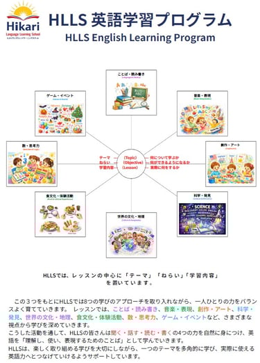 HLLSでは、親しみやすい先生たちと共に、明るく快適で安全な環境で英語を学びましょう